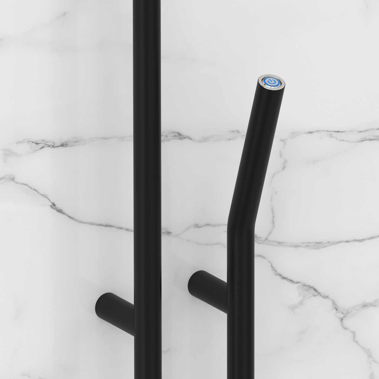 Две версии исполнения — правый и левый. Выберите модель, подходящую под планировку вашей ванной комнаты: короткий виток коллектора с кнопкой будет расположен с удобной вам стороны.